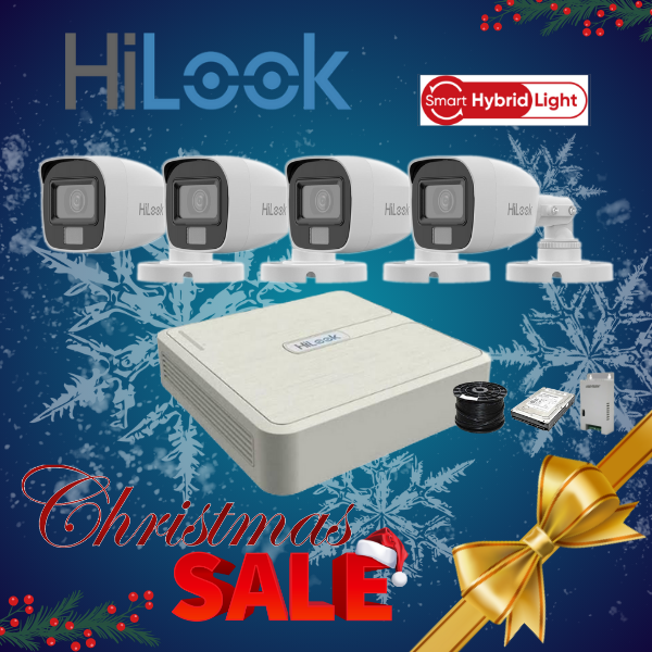 HiLook 2MP Dual Smart-Hybrid Light 4ch Turbo HD kit - DVR - 4 x HD1080P Hybrid Light Camera - 20M Night vision - 500GB HD - 100m Cable