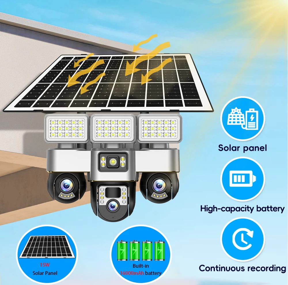 The solar panel is integrated with the camera and continuously absorbs solar energy to supply power for the built-in battery of the camera directly,charging faster. Super long battery life,and long time standby!