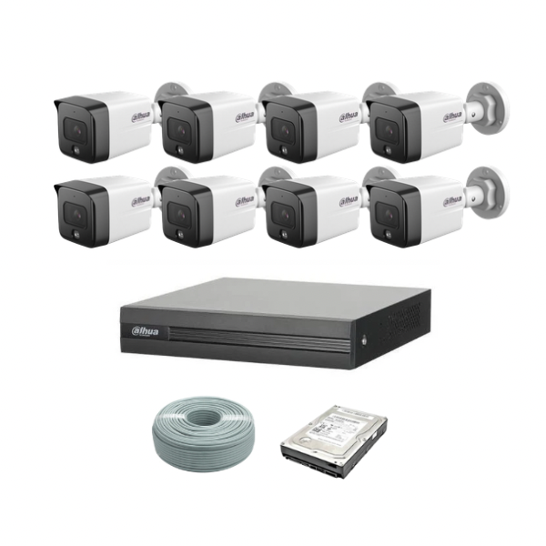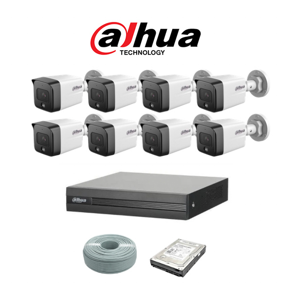 Dahua 2MP IP POE Camera Kit - 8ch NVR - 8 x 2MP IP cameras - 1TB HDD - 100M cable - 30M Night vision