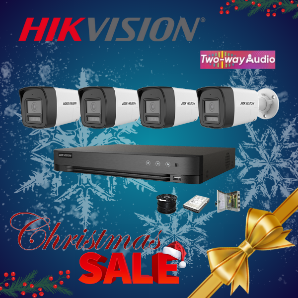 NEW! Hikvision 4ch Turbo HD kit - HD DVR - 4 x 2MP Two Way Audio & Siren - 1TB HDD - 100m Cable - 20m Night vision